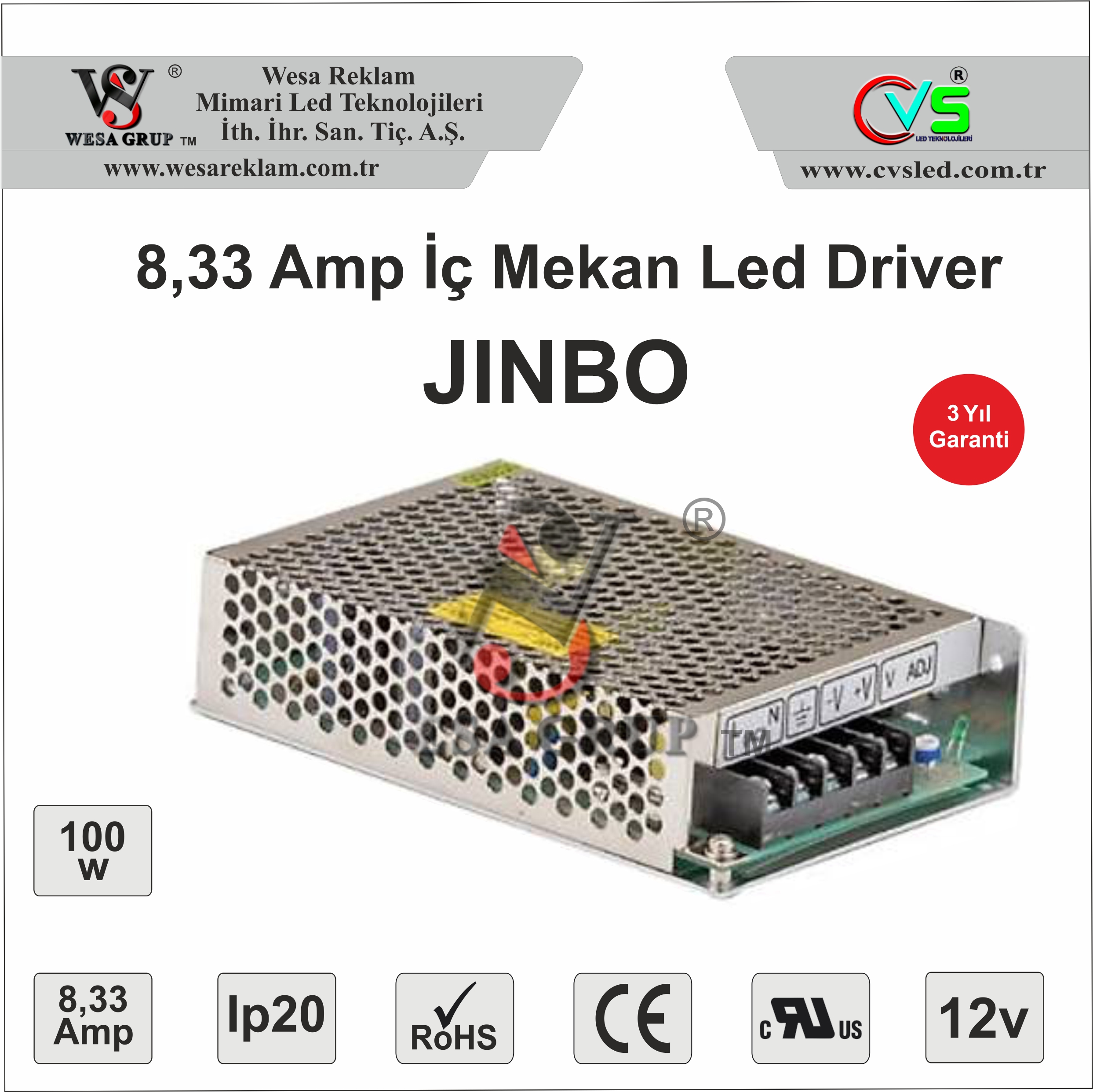 JINBO LRS İç Mekan Driver 12V 100W Alüminyum Kasa, yüksek verimlilik, güçlü çıkış kapasitesi, güvenlik korumaları ve dayanıklı yapısı ile hem profesyonel hem de ev kullanıcıları için ideal bir LED güç kaynağı çözümüdür.